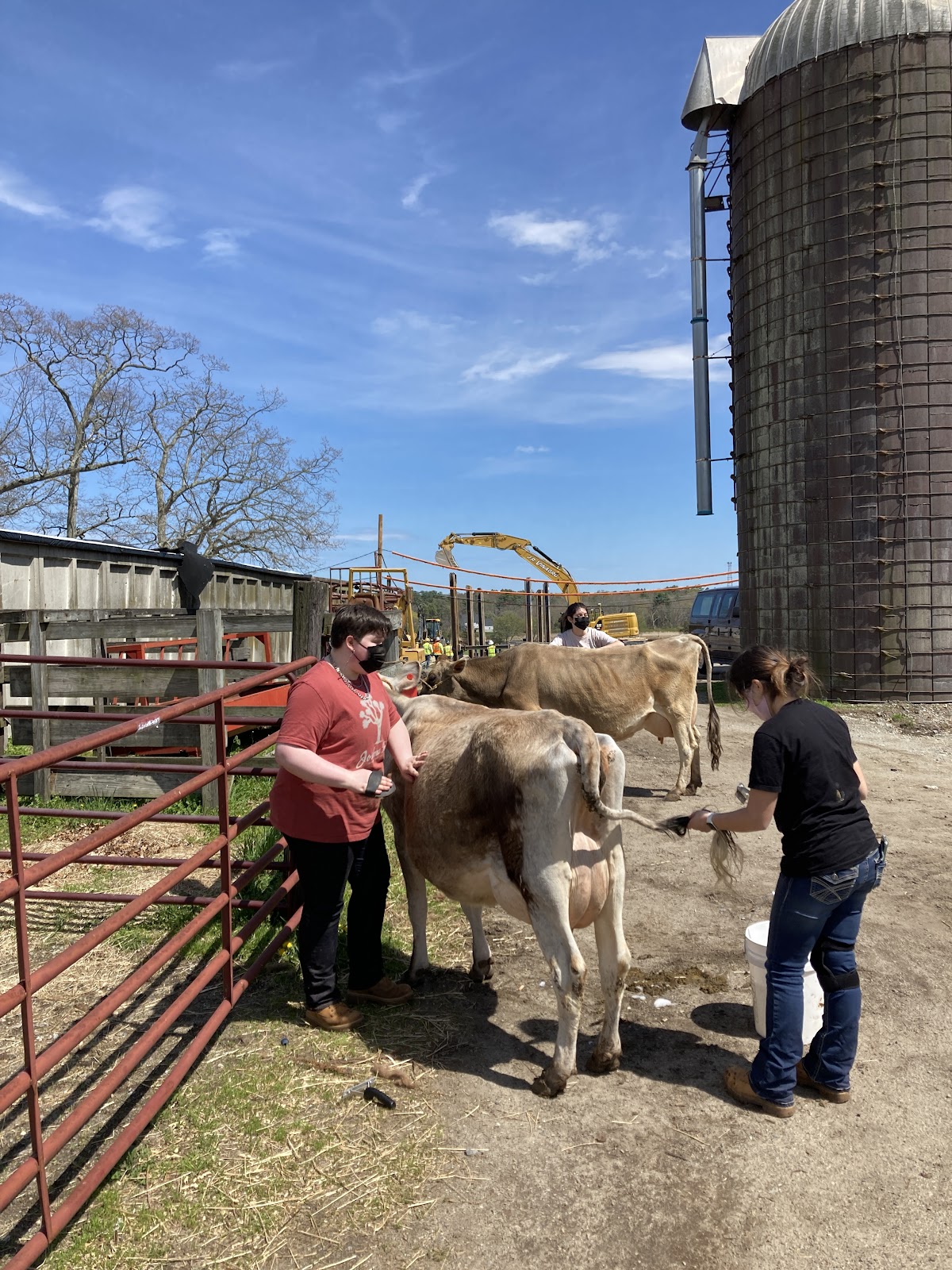 Animal Science: Mrs. Bosworth’s Large Animal Science students do some spring cleaning on the dairy herd. In the background you can see the new dairy barn under construction.